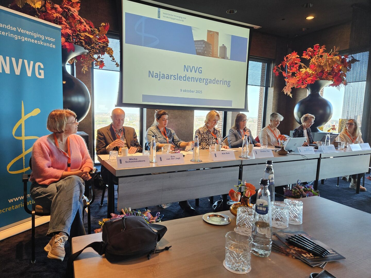 Op 9 oktober 2025 vond de NVVG najaarsledenvergadering plaats. Een redelijk aantal leden was persoonlijk getuige van de voordracht van Micha Schoenmakers als nieuw bestuurslid. Unaniem werd de benoeming van Micha een feit, zodat het bestuur weer op volle sterkte vooruit kan. De agendapunten werden redelijk vlot afgewerkt, de begroting is goedgekeurd en Linda ten Hove werd vanwege haar niet aflatende inzet benoemd tot lid van Verdienste. De ochtend werd afgesloten door Wout de Boer, die over de geschiedenis van de verzekeringsgeneeskunde verhaalde en een oproep deed om oude documenten en andere stukken die het waard zijn te bewaren aan te leveren. Ben je geïnteresseerd om hem te helpen dan mag je contact met hem opnemen.